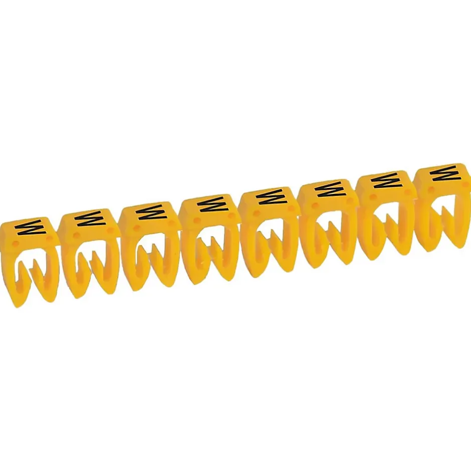 Bagues de repérage pour fil – Marqué Lettre W – Couleur Jaune Ces Repères de câbles sont fabriqués en France par Legrand, ils sont issus de la gamme CAB3. Ils sont très utilisés par les professionnels, les fabricants de machines spéciales et les tableautiers. Ces repères Legrand 038132 respectent les codes couleurs internationaux.Ces repères marqués de la Lettre W en couleur Jaune se clipsent sur des fils électriques de section 0,15 à 0,5mm² mais ils sont également compatibles avec les blocs de jonction Viking3 Legrand (4 repères maximum par bornes viking).Si vous avez besoin d’associer plusieurs repères sur un même fils, les marquages resteront parfaitement alignés grâce à un système de picots très pratique.Ces repères de filerie sont conditionnés par boite de 300 repères en réglettes de 25 repères.L’essentiel des repères de filerie Legrand 038132 Lettre W Couleur noir (code couleur international)Compatible avec fils de section 0,15 à 0,5mm² Compatible avec bornier Viking3 (4 repères maximum par bornes)Alignement parfait des repères grâce aux picotsBoite de 300 repèresFabrication française