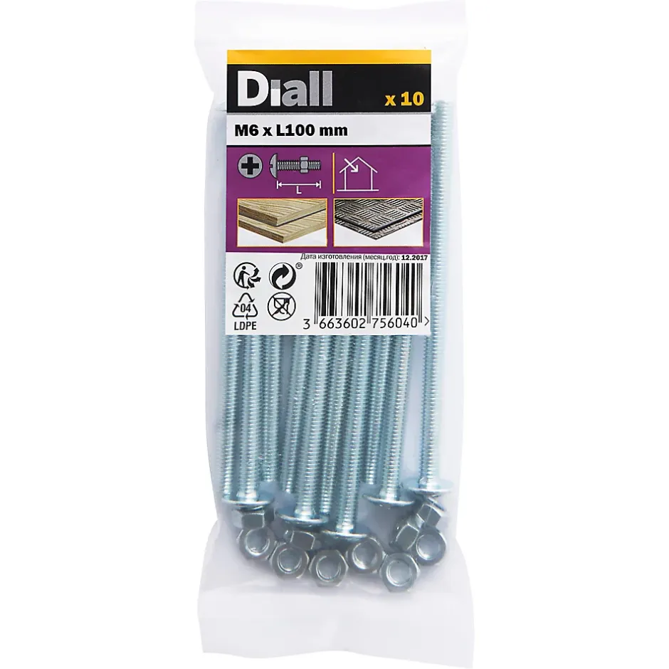 Les 10 écrous et boulons de couverture zingués de ce pack sont fabriqués à partir d’acier au carbone. Ils mesurent 100 mm de long et ont un diamètre M6. Ils sont idéaux pour tout un éventail de projets de bricolage.