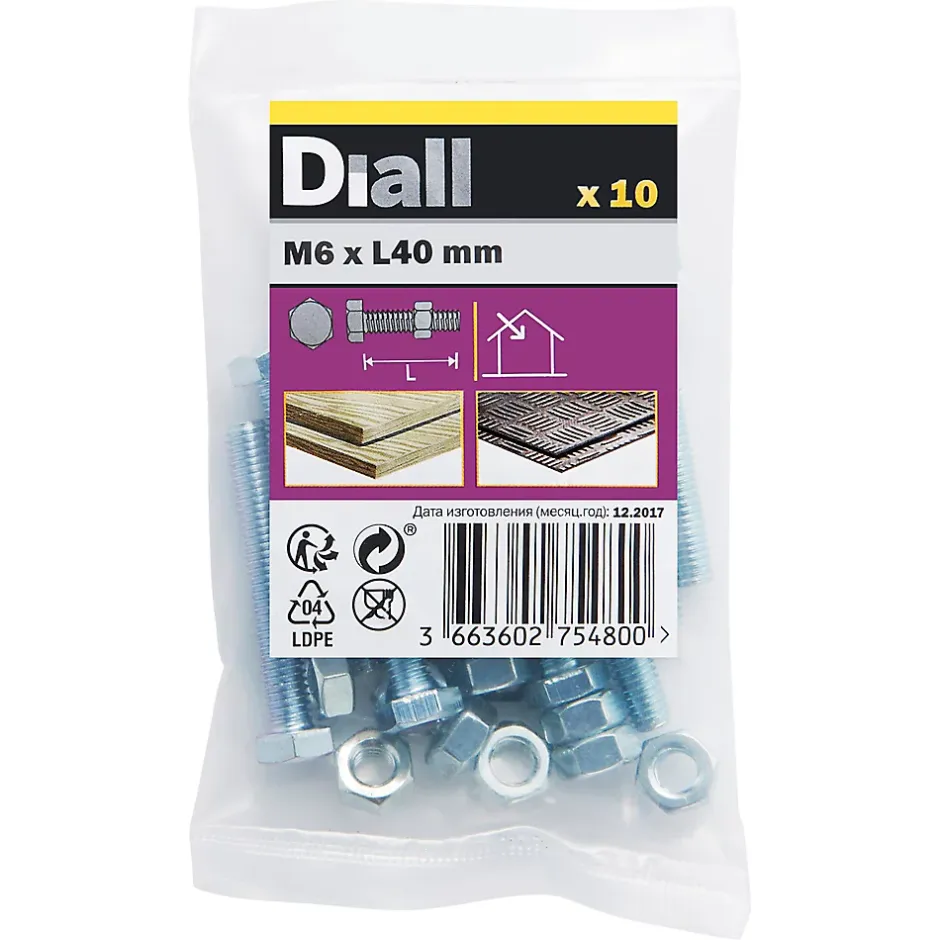 Les 10 boulons et écrous hexagonaux zingués de ce pack sont fabriqués à partir d’acier au carbone. Ils mesurent 40 mm de long et ont un diamètre M6. Ils sont idéaux pour tout un éventail de projets de bricolage.