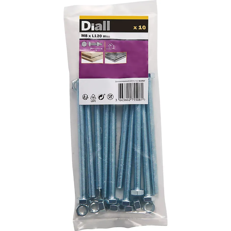 Les 10 boulons et écrous hexagonaux zingués de ce pack sont fabriqués à partir d’acier au carbone. Ils mesurent 120 mm de long et ont un diamètre M8. Ils sont idéaux pour tout un éventail de projets de bricolage.