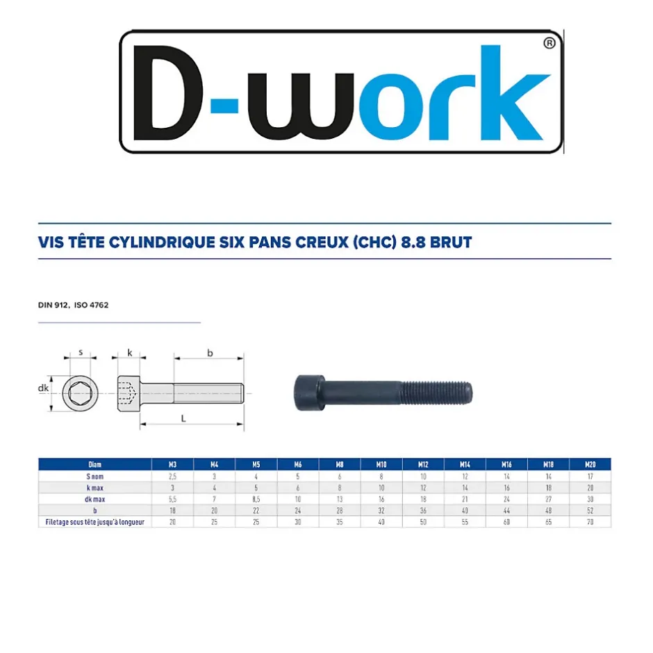 Présentation du produit : Découvrez notre lot de 10 vis à tête hexagonale en acier CL8.8, idéales pour des applications nécessitant une résistance accrue. Avec une longueur de 200 mm et un diamètre de 18 mm, ces vis sont conçues pour offrir une fixation solide et durable. Caractéristiques principales : : Type : Vis à Tête Hexagonale Dimensions : 18×200 mm Matériau : Acier CL8.8 Norme : DIN 912 Avantages : : Ces vis sont non seulement résistantes, mais elles garantissent également une durabilité exceptionnelle, ce qui les rend parfaites pour des projets de construction ou de bricolage exigeants. Utilisation : : Pour une utilisation optimale, assurez-vous de choisir un outil adapté pour visser ces vis. Elles sont idéales pour des applications dans le bâtiment, la mécanique ou tout autre domaine nécessitant une fixation robuste.