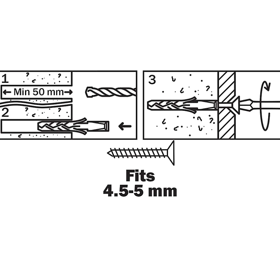 - Le mécanisme d’expansion à deux parties offre un ancrage ferme sur des matériaux pleins