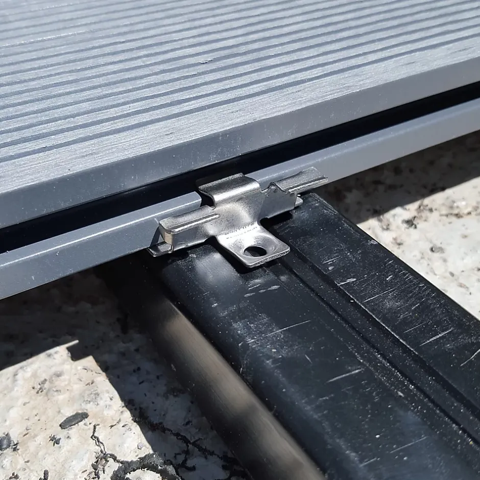 Spécialement adapté aux lames de terrasse composite Greendeck R, les clips maintiennent un espace de 5mm le long des lames pour un rendu harmonieux de l’ensemble grâce à de petits ergots