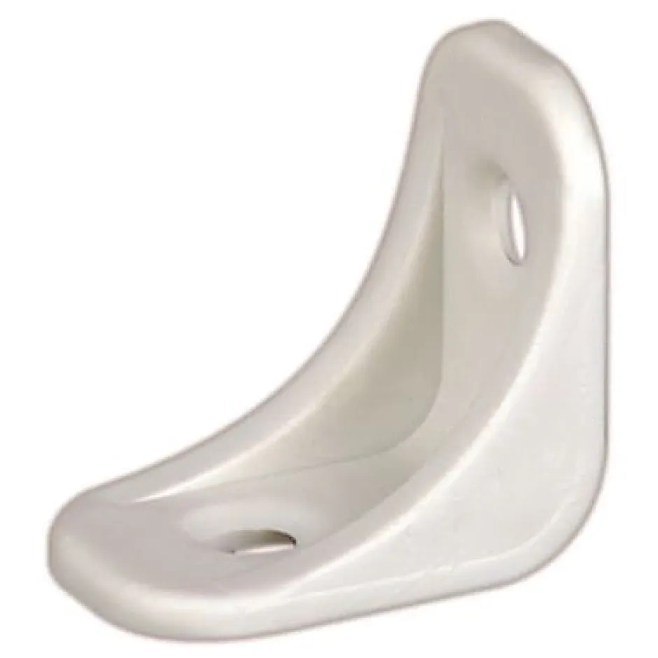 Équerre d’assemblage en plastique blanc.
