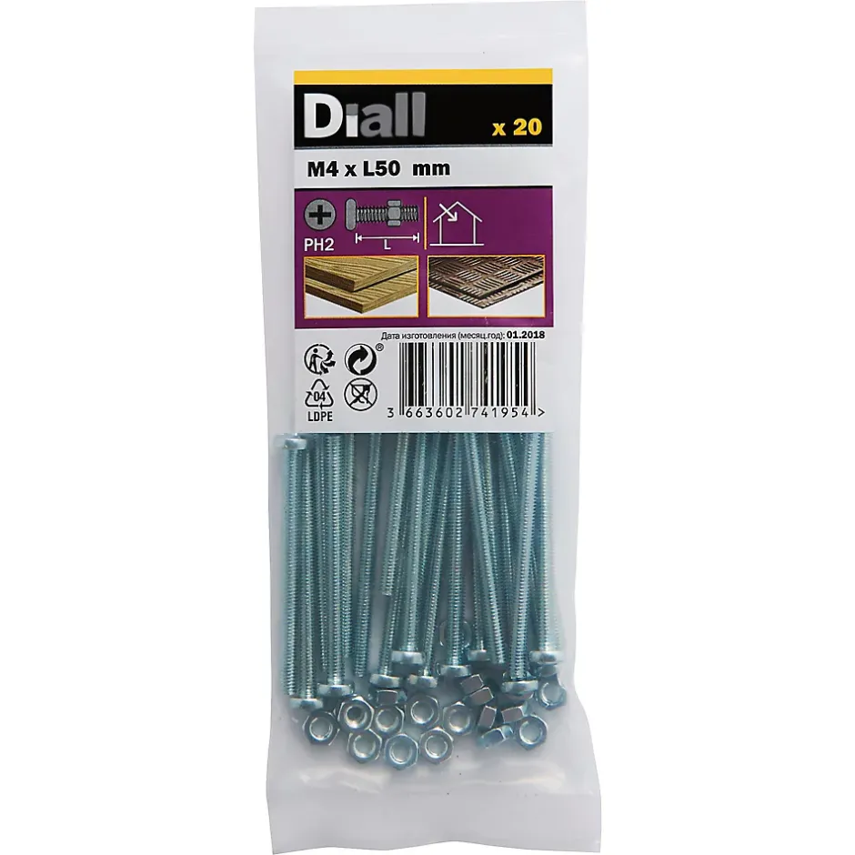 Les 20 écrous et boulons à tête cylindrique zingués de ce pack sont fabriqués à partir d’acier au carbone. Ils mesurent 50 mm de long et ont un diamètre M4. Ils sont idéaux pour tout un éventail de projets de bricolage.