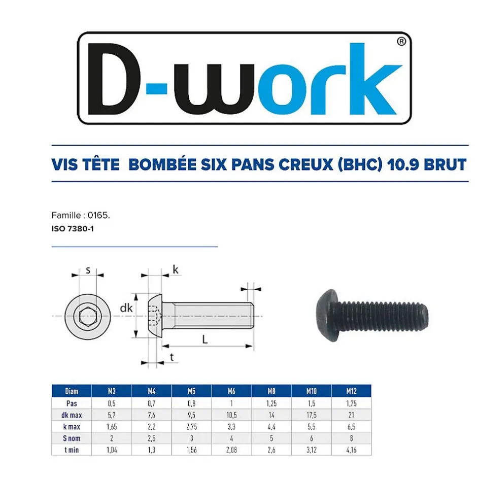 Présentation du produit : Découvrez notre lot de 200 vis BHC en acier de qualité CL10.9, idéales pour vos projets de construction et de bricolage. Ces vis robustes et durables sont conçues pour offrir une fixation sécurisée dans divers matériaux. Caractéristiques principales : : Type : Vis BHC Dimensions : 6×10 mm Matériau : Acier CL10.9 Quantité : 200 pièces Avantages : : Ces vis sont conçues pour résister à des charges élevées, garantissant ainsi une fixation fiable et durable. Leur conception permet une installation facile et rapide, ce qui les rend parfaites pour les professionnels comme pour les bricoleurs. Utilisation : : Pour une utilisation optimale, pré-percez les matériaux durs et utilisez un tournevis adapté pour visser. Assurez-vous de respecter les normes de sécurité lors de l’utilisation de ces vis.