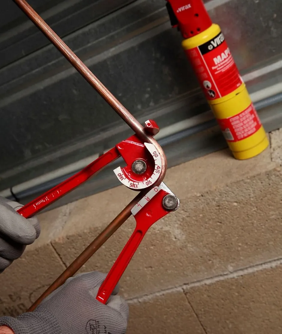 Confort et gain de place par rapport à trois pinces mono-diamètre. Compatible tubes cuivre écroui et recuit Ø6, Ø8 et Ø10 mm, épaisseur 1 mm. Corps en alliage léger, graduation de 0 à 180° et angle de cintrage jusqu’à 180°. Idéale pour climatisation, réfrigération, alimentation gaz et circuits d’air comprimé.