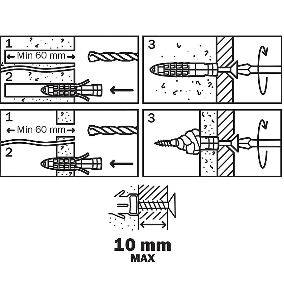 - Cheville universelle avec vis pour tout type de supports