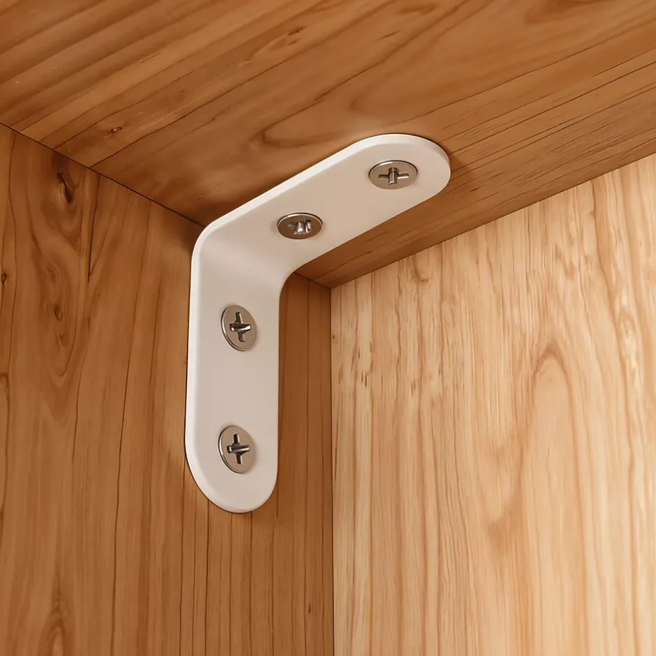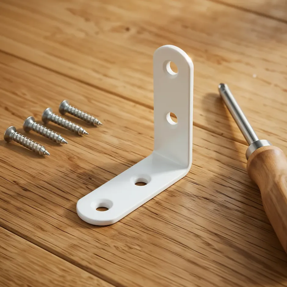 Lot de 4 équerres de chaise en acier blanc, l. 14 x H. 50 x P. 50 mm.