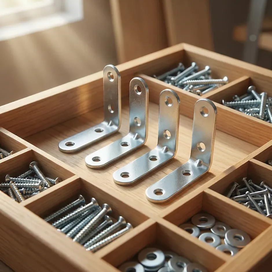 Lot de 4 équerres de chaise en acier zingué, l. 15 x P. 25 mm.