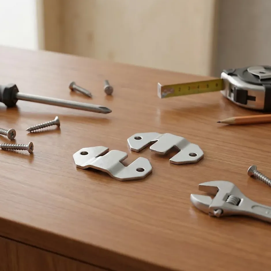 Lot de 4 ferrures d’accrochage en acier zingué.