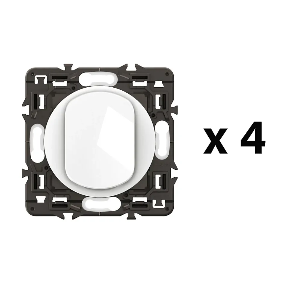 Lot 4 interrupteurs ou va-et-vient Céliane 10AX à bornes automatiques – livrés avec enjoliveurs Blanc et supports montés, à équiper de plaques de finition