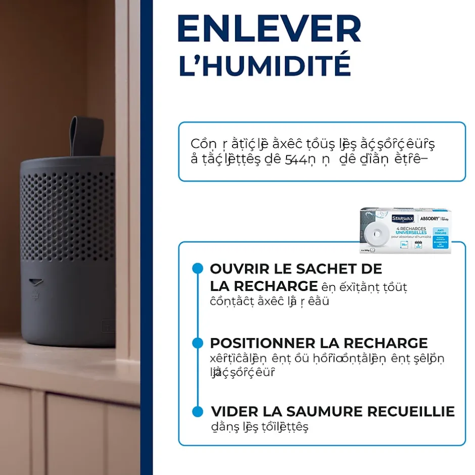 4 recharges de 500g universelles pour absorbeur d’humidité Starwax
