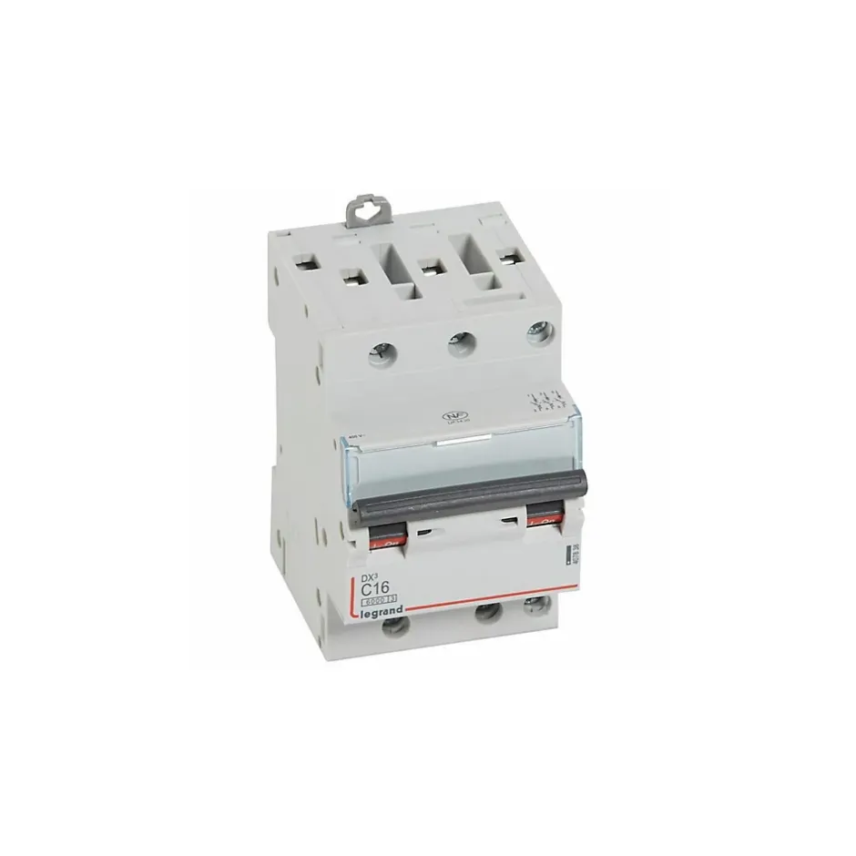 Disjoncteur Legrand triphasé avec arrivée haute et départ bas à vis pour peigne HX³ optimisé Ce disjoncteur 3P est fabriqué par Legrand. Il appartient à la gamme DX3.Dans le respect de la norme EN60947-2, il assure un pouvoir de coupure de 10kA (protection des circuits électriques tertiaires et industriels). Il assure également un pouvoir de coupure de 6kA pour être conforme à la norme EN60868-1 (protection des circuits électriques résidentiels).Ce disjoncteur est raccordé au circuit via un système de connexion à vis. Il occupe 3 modules de 18mm sur le rail DIN de votre tableau électrique.Calibré à 16A, le disjoncteur 407838 courbe C doit être installé sur un circuit de tension 380V.L’essentiel du disjoncteur Legrand 407838Courbe CPouvoir de coupure en habitation : 6kAPouvoir de coupure en industrie : 10kACalibrage : 16ATension nominale : 380V