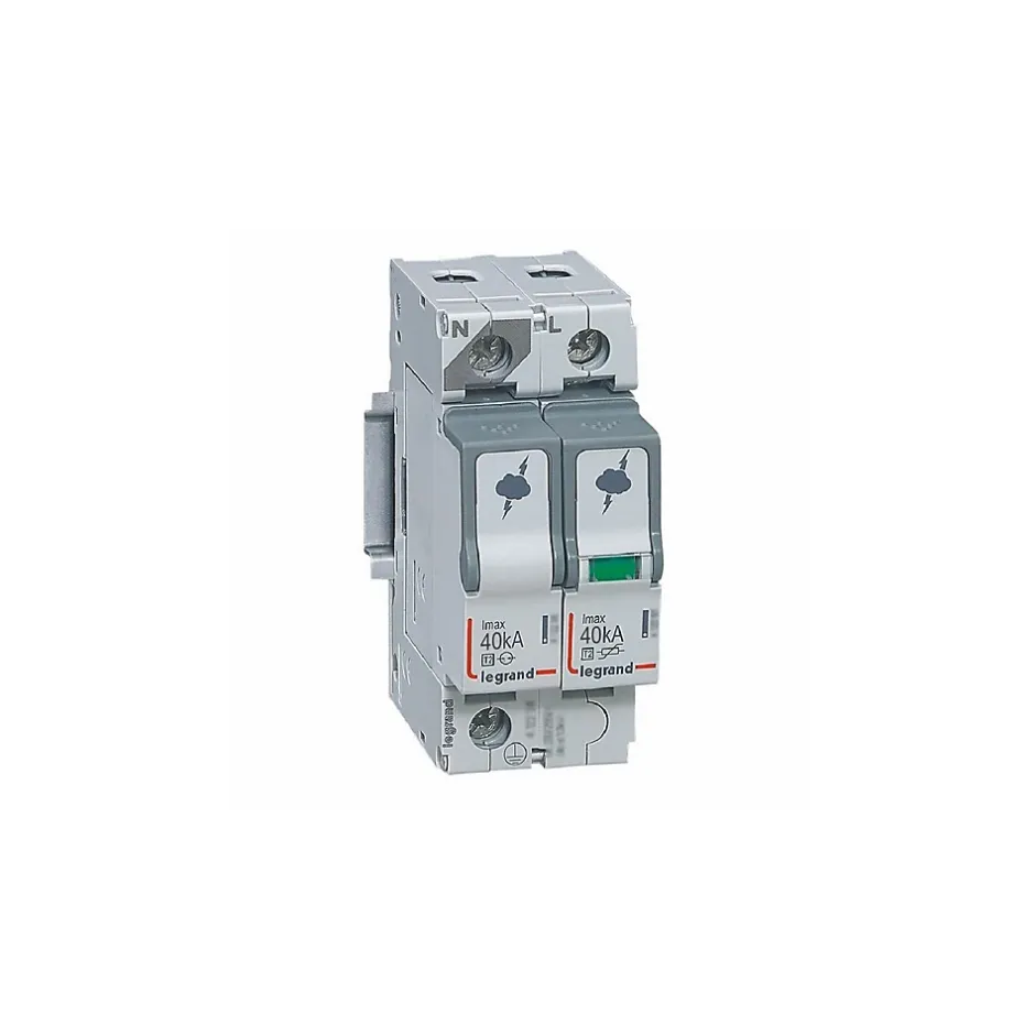 Parafoudre phase neutre Legrand 412244Ce parafoudre 1P+N de type 2 est installé en tête de tableau électrique quand l’installation n’inclut pas de paratonnerre. Il est positionné en aval du disjoncteur de branchement.Le parafoudre modulaire Legrand 412244 est un parafoudre sans disjoncteur intégré, il convient donc de le protéger par un disjoncteur 1P+N 25A. Cette protection assure la sécurité du circuit quand le parafoudre arrive en fin de vie (obligatoire selon NF C 15-100)Ce dispositif de protection contre la foudre inclut un indicateur d’état de fin de vie en façade du parafoudre. cet indicateur est vert quand le parafoudre est en fonction et il est en orange quand la cartouche est à remplacerCe parafoudre dispose d’un courant nominal de décharge de 20 kA . Il dispose également d’un courant max de décharge de 40kA, Cette valeur correspond à l’intensité max que peut écouler un parafoudre sur un choc de foudre.Ce dispositif est connecté au circuit par un système de connexion à vis.L’essentiel sur le parafoudre Legrand 412244Courant nominal de décharge In = 20 kACourant max de décharge Imax= 40kAType 2parafoudre auto protégé : NonReport de signalisation : OuiParafoudre débrochable (cartouches remplaçables)