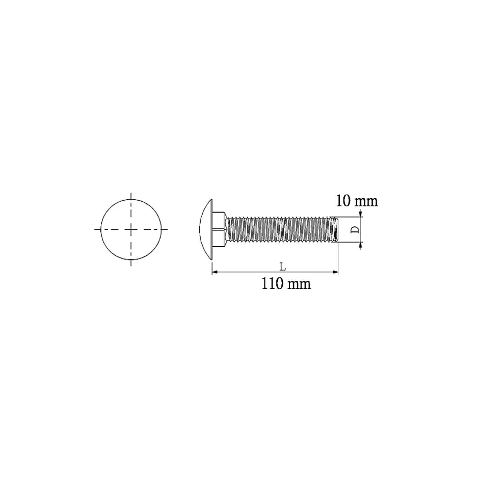 5 boulons tête ronde collet carré 10 x 110 mm