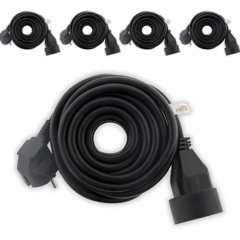 Rallonge électrique noire 2P+T 16A 3 mètres Ce prolongateur de couleur noire est idéal pour brancher vos appareils électriques. Caractéristiques: Equipé d’une fiche 2P+T 16A HO5VV-F 3G1,5mm² Longueur 3 mètres Puissance max 3680W sous 230V~ Avec sécurité enfant et certifié NF. Existe en Longueur : 3m (3545411921041), 5m (3545411921065)