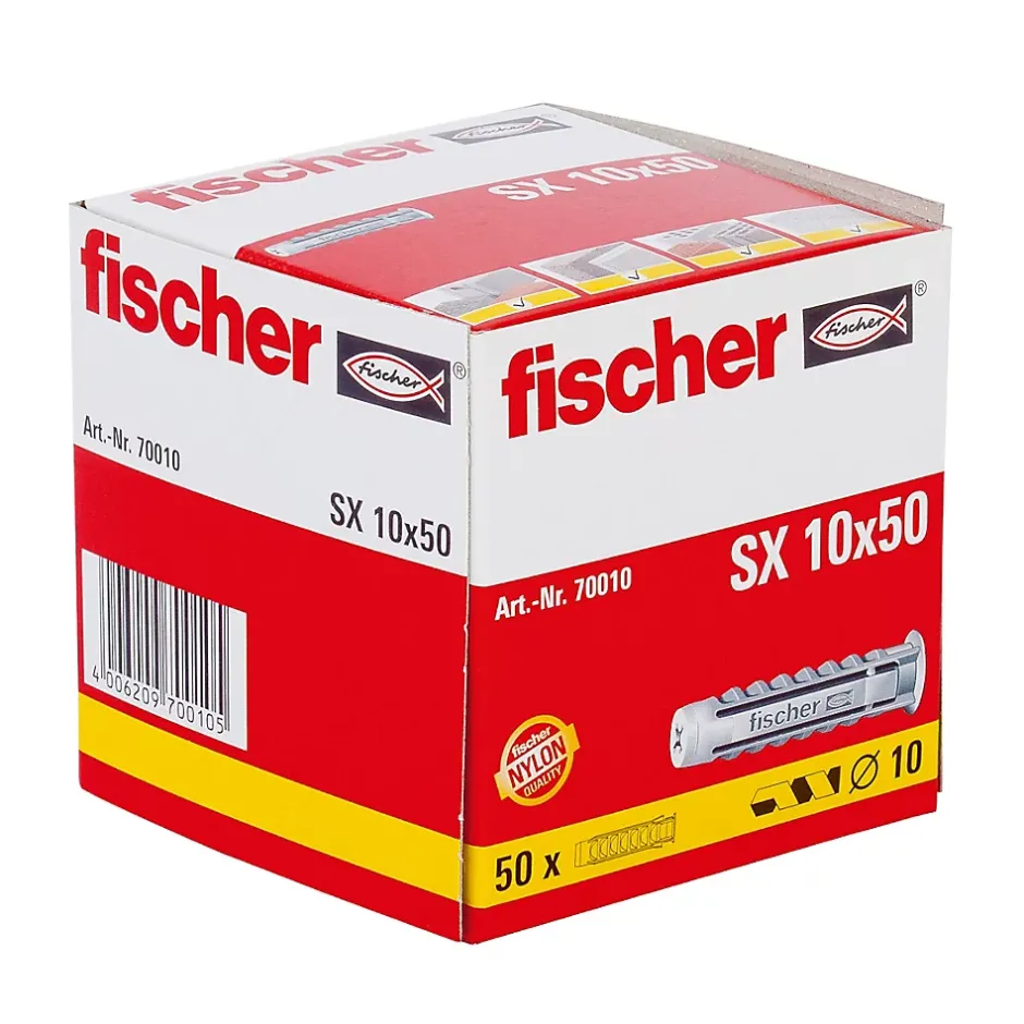 50 chevilles pour murs pleins Fischer Ø10x50mm