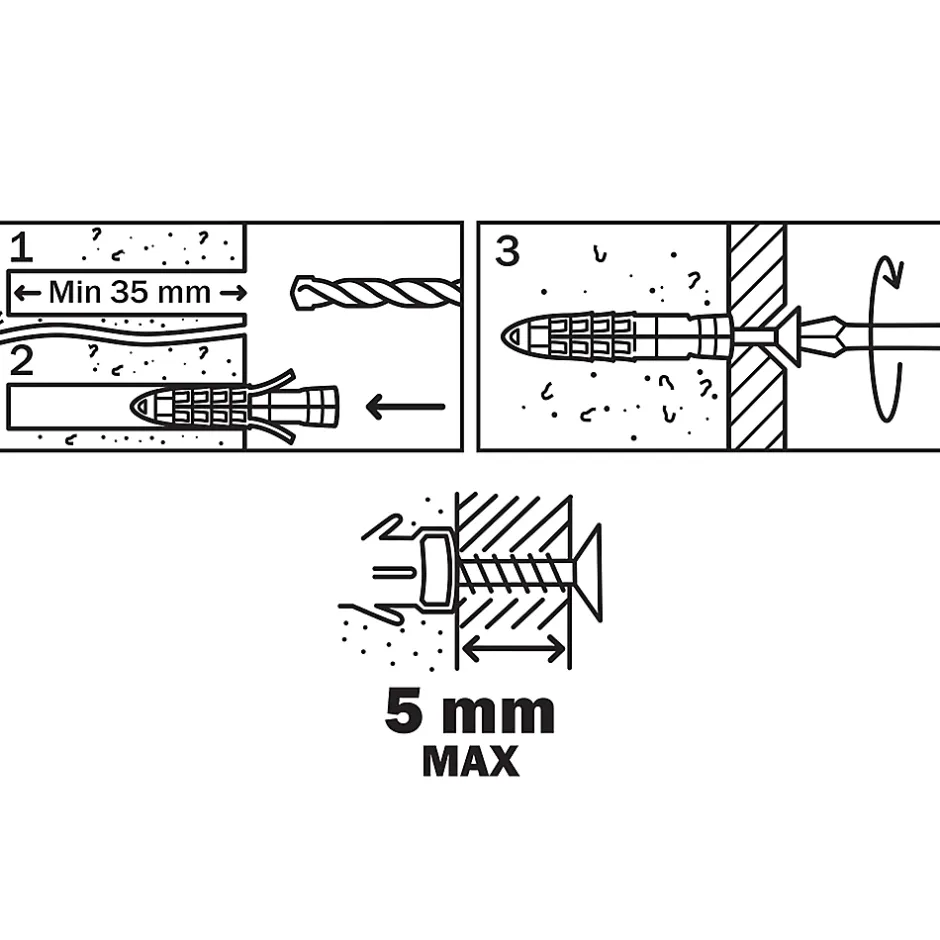 - Les chevilles anti-rotation facilitent l’adhérence dans de nombreux supports