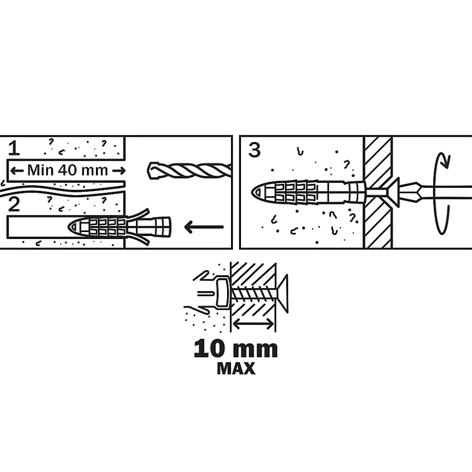 - Les chevilles anti-rotation facilitent l’adhérence dans de nombreux supports