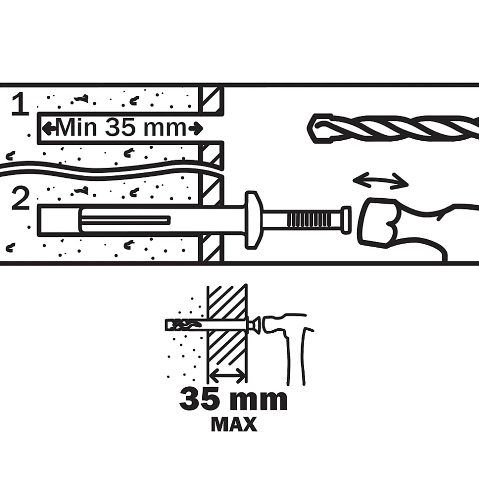 - Fixations faible usage sur béton et maçonnerie grâce à une capacité de charges conséquente