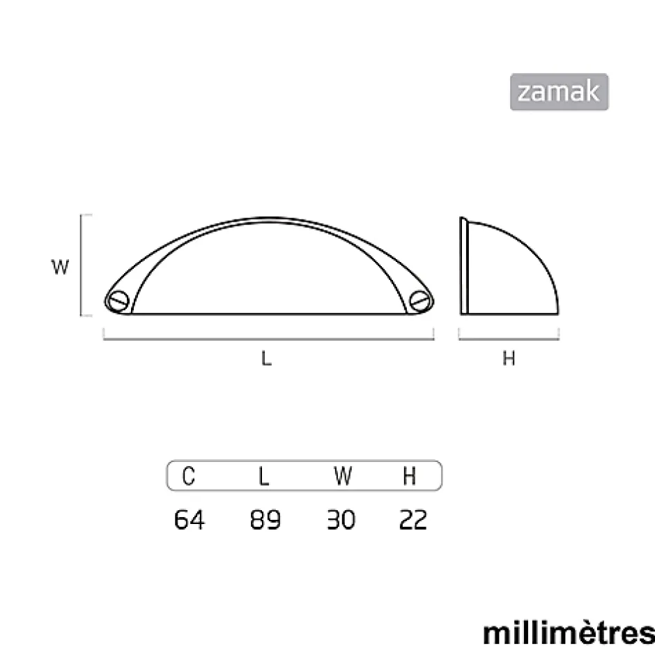 Vous pourrez facilement monter cette poignées de meuble coquille en nickel mat pour porte et cuisine – entraxe 32MM sur la porte ou le tiroir de votre meuble grâce à ses vis M4 découpables qui serviront à différentes épaisseurs de porte. A l’achat de ce pack nous vous enverrons 6 poignées et les vis nécessaires au montage. Cette poignée a été conçue pour les meubles, tiroirs et armoires de style Moderne. Le matériau de fabrication de cette poignée est Zamak.