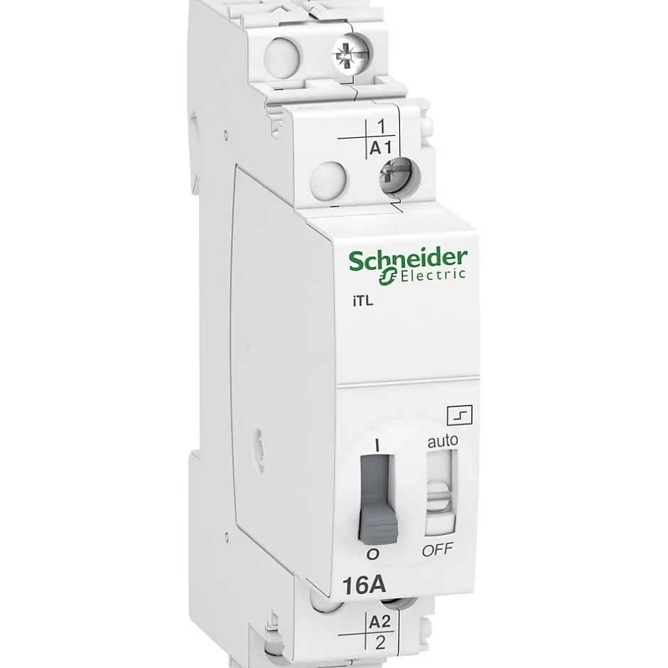 Télérupteur Acti 9 Schneider Electric, 16 A, commande 230-240 V AC ou 110 V DC, idéal pour centraliser la commande d’éclairages via plusieurs boutons, montage compact 1 module, performance et durabilité garanties.