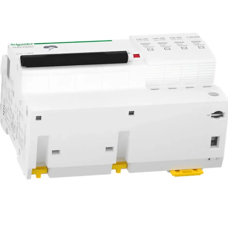 Parafoudre triphasé + neutre Schneider A9L16294Ce parafoudre 3P+N de type 2 est installé en tête de tableau électrique quand l’installation n’inclut pas de paratonnerre. Il est positionné en aval du disjoncteur de branchement.Le parafoudre modulaire Schneider A9L16294 est un parafoudre auto protégé avec disjoncteur intégré. Cette protection assure la sécurité du circuit quand le parafoudre arrive en fin de vie (obligatoire selon NF C 15-100)Ce dispositif de protection contre la foudre inclut un indicateur d’état de fin de vie en façade du parafoudre, caractérisé par un voyant mécanique en rouge quand le parafoudre est à remplacer. Le report de signalisation est assuré par des contacts NO et NF.Ce parafoudre dispose d’un courant nominal de décharge de 20kA. Il dispose également d’un courant max de décharge de 40kA, Cette valeur correspond à l’intensité max que peut écouler un parafoudre sur un choc de foudre.Ce dispositif est connecté au circuit par un système de connexion à vis.L’essentiel sur le parafoudre Schneider A9L16294Courant nominal de décharge In = 20kACourant max de décharge Imax= 40kAType 2parafoudre auto protégé : OuiReport de signalisation : OuiParafoudre débrochable (cartouches remplaçables)