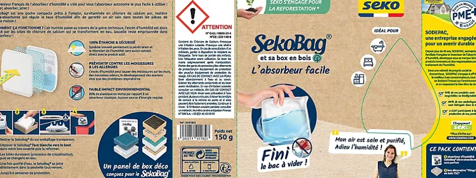 - Qualité : bois issu de forêts bien gérées (certifié ) avec de belles finitions Aide à la reforestation : 1 box achetée = 1 arbre à noix de cajou (anacardier) planté au Cameroun Grâce à sa technologie exclusive sur le marché, l’absorbeur d’humidité SekoBag s’utilise tel quel (face blanche vers le haut), sans bac à vider