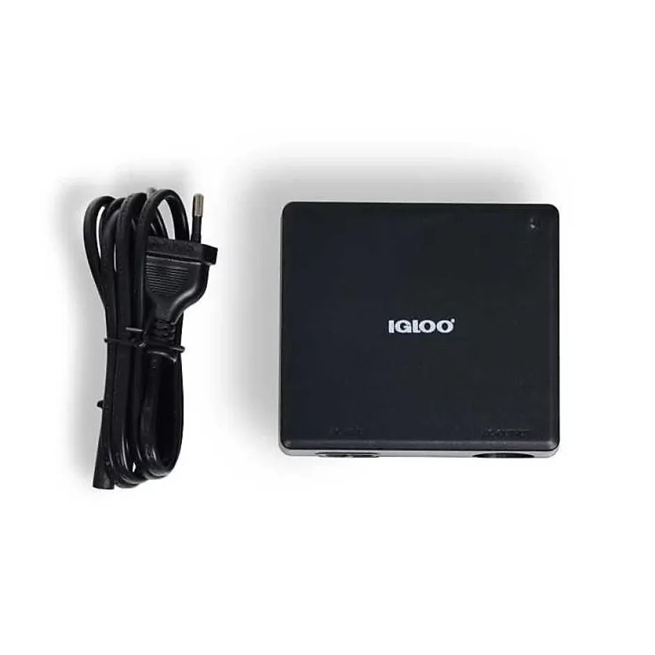 Adaptateur secteur IGLOO 230 V vers prise 12 V pour glacières portables : permet d’alimenter les glacières 12 V IGLOO depuis une prise secteur 230 V. Boîtier compact noir mat, câble secteur détachable (prise Europlug Type C) inclus. Idéal pour l’été, les trajets sans voiture ou l’utilisation intérieure lorsque le secteur est disponible. Référence fabricant IGL6975399593515.