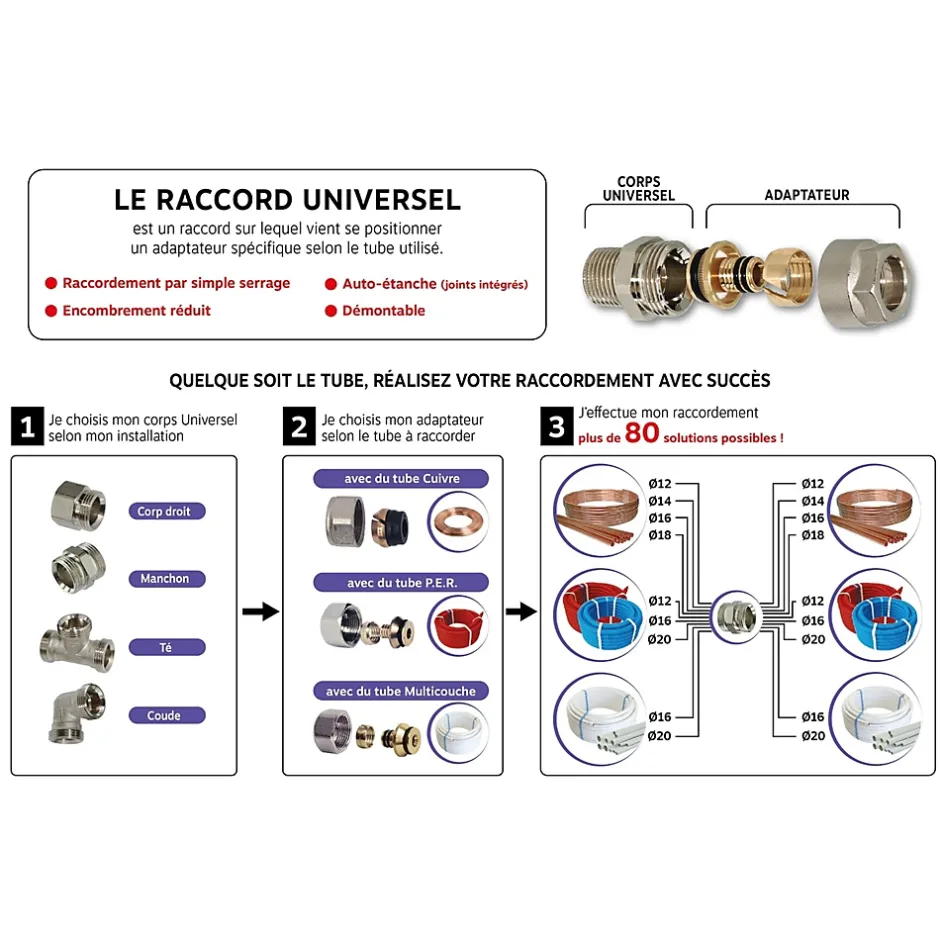 - L’étanchéité entre le raccord 3/4 Ek et l’adaptateur est assurée par un joint intégré