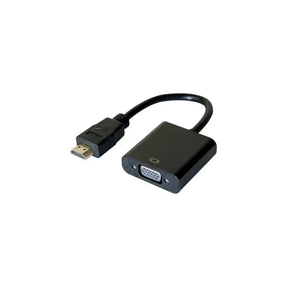Convertisseur HDMI vers VGAPermet la restitution d’un signal vidéo HDMI sur un périphérique d’affichage VGA, tel un moniteur CRT, un écran ou un téléviseur LCD, un vidéoprojecteur …Descriptif technique:Convertisseur HDMI Longueur du câble : 25 cmPoids : 230gNorme : CE et RohS