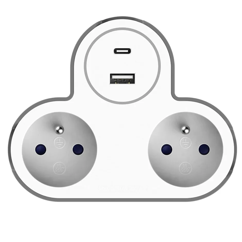 - Notre multiprise deux prises, équipée d’une protection enfant pour plus de sécurité, permet de brancher des appareils en toute simplicité.