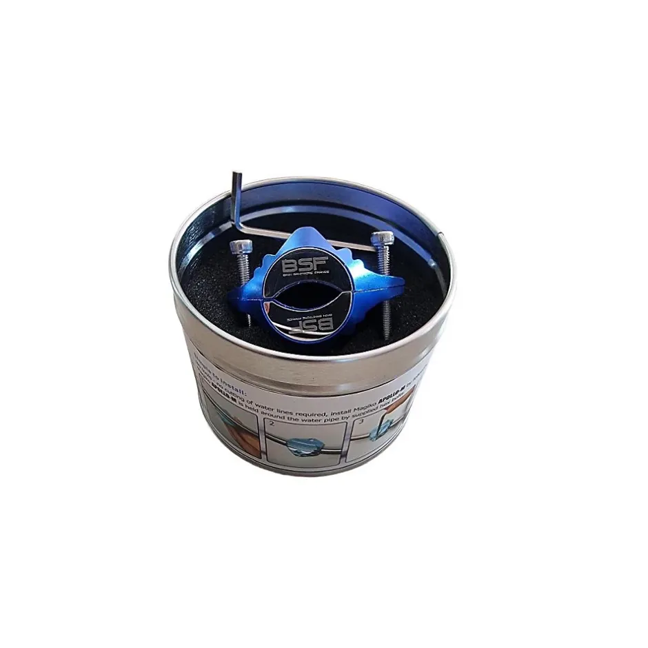 Prévention contre la formation du tartre, cet anticalcaire magnétique BSF de 7500 Gauss protègera durablement tous vos équipements sanitaires et appareils électroménager -Marque Française BSF -sans branchement électrique -installation en 2 minutes sans outils -adapté pour un appartement -pour tuyau diamètre 6 à 20mm, tous types de conduites(cuivre, PER, etc…) -Dimension Longueur 45 x Largeur 55 x épaisseur 35 mm,poids 150 gr -espace nécessaire entre le mur et le tuyau pour intercaler l’anti-calcaire: 17mm L’anti tarte magnétique BSF se fixe en 2 minutes sur le tuyau d’arrivée d’eau du logement(quel que soit la matière du tuyau cuivre, pvc, PER, etc…). Sa puissance de 7500 Gauss lui permet de protéger tous les équipements d’un logement type appartement. L’installation ne nécessite aucune modification de la plomberie existante, sans branchement électrique, sans entretien, ce qui en fait une solution pratique pour les particuliers comme pour les professionnels. Contrairement à un anticalcaire chimique, qui va modifier la composition chimique de l’eau par ajout de produits chimiques,notre système anticalcaire magnétique est simple, durable, efficace, sans impact sur la santé. Il ne nécessite ni alimentation électrique, ni maintenance et fonctionnera pendant des décennies. Votre peau sous la douche est moins agressée tout comme les cheveux, l’eau est également plus agréable à boire, la vaisselle sera plus facile à faire, le lave-vaisselle ne rayera plus les verres… Le nettoyage de la douche, des lavabos et des WC est facilité. La puissance de l’aimant néodyne monté en opposition de polarité contre le calcaire. Le champ magnétique modifie la polarisation des sels minéraux contenus dans l’eau (le magnésium et le calcaire).