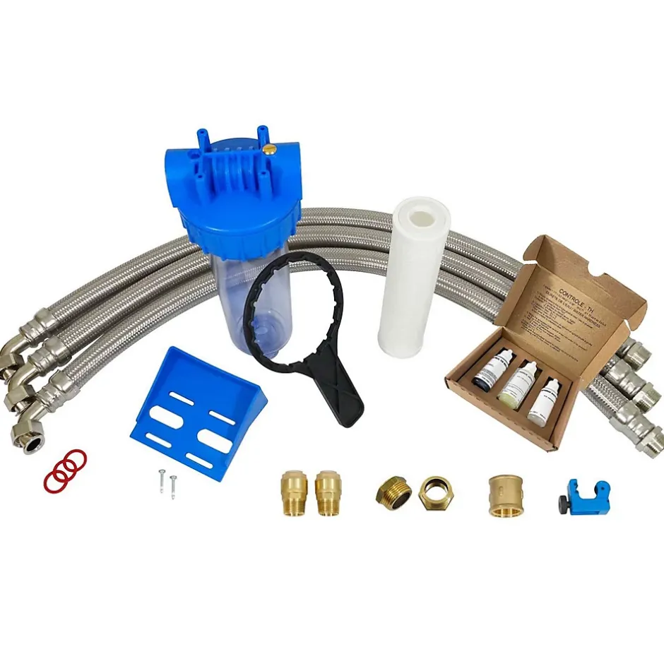 La vanne Clack WS100V est d’une grande fiabilité de par sa robustesse et sa simplicité. La régénération est lancée lorsque le volume d’eau est consommé. En fonction de l’application, du volume de résine et de la dureté brute, la régénération doit être calculée pour se lancer avant que les résines ne soient saturées en calcaire. Notre résine bénéficie de l’attestation de conformité sanitaire ACS vous permettra de consommer l’eau sans matériel supplémentaire de traitement. Le grand pouvoir d’échange de cette résine permet une consommation de sel réduite et une durée de vie allongée. Pour un appareil correctement dimensionné et correctement entretenu, la durée de vie est estimée à 15 ans.Notre kit de montage inclus vous permettra de réaliser rapidement et facilement l’installation de votre adoucisseur, tout en bénéficiant d’une pré-filtration efficace. Ce kit comprend : 1 filtre de protection complet 9″3/4 avec cartouche microfibre 20 µm, mamelons en laiton, équerre de fixation et clé de démontage ; 1 trousse d’analyse TH ; 1 mini coupe-tube ; 2 raccords rapides de diamètre 18 mm ainsi que 3 flexibles en inox. Il est possible de commander des raccords rapides en diamètre 16 ou 22 mm en consultant notre catégorie Outillage de plomberie.