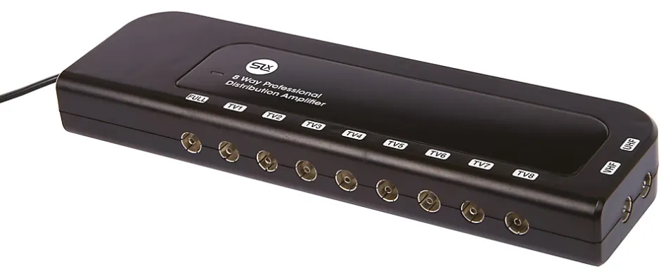 - Conçu pour améliorer et diffuser les signaux de télévision sur de longues distances par câble ou sur des stations de télévision et de radio éloignées, cet amplificateur intérieur à 8 sorties vous aidera à obtenir la meilleure qualité de signal possible et à assurer une réception optimale sur 8 téléviseurs au maximum