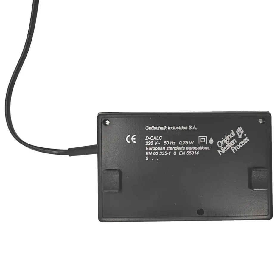 L’anti tartre électronique D-CALC Plus « CNA » est conçu pour protéger les installations sanitaires des effets néfastes du calcaire. Il empêche les incrustations calcaires, augmentant ainsi la longévité des appareils ménagers tels que le chauffe-eau et chaudière. Ce dispositif s’installe facilement sans nécessiter de démontage et convient à toutes les installations, qu’elles soient anciennes ou récentes Le D-CALC utilise des impulsions O.H. (ondes hertziennes) transmises à l’eau via des câbles enroulés autour de la tuyauterie, un procédé connu sous le nom de transfert capacitif. Ces impulsions modifient physiquement la formation des cristaux de calcaire, empêchant leur accumulation sur les parois internes des canalisations.Le boîtier compact en ABS se fixe sur la conduite d’eau à l’aide de brides en nylon et ne nécessite aucun entretien particulier. Le circuit électronique est protégé par une résine spéciale contre la poussière et l’humidité, garantissant sa durabilité.Grâce à son ajustement automatique « CNA », cet anti tartre adapte ses paramètres aux variations de dureté de l’eau en temps réel, assurant une efficacité optimale. Les Leds intégrées permettent un contrôle instantané du fonctionnement du dispositif sans perte de temps.Tension d’alimentation : 230V / 50-60HzPuissance : 0,75WDimensions : H160mm x L100mm x P55mmPeso: 600gCâbles d’induction standards : 2 x 2,5 m enfichablesL’action du D-CALC est purement physique et n’altère pas la composition chimique de l’eau.