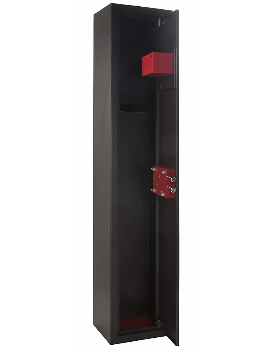 L’armoire à fusils DurbanL’armoire à fusils Durban possède une porte d’épaisseur de 2mm. Elle contient un coffret intérieur pour ranger vos munitions avec vos fusils. Sa capacité permettra de mettre en sécurité jusqu’à 3 fusils. Les armoires à fusils permettent de maintenir vos armes en bon état. Ainsi, elles seront à l’abri de l’humidité, protégées des chocs grâce à un tapis à la base de l’arme et suspendues à un râtelier en caoutchouc pour éviter qu’elles ne s’entrechoquent.Les mécanismes de sécuritéL’armoire à fusils Durban dispose de plusieurs mécanismes de sûreté.Verrouillage par 2 pênes en acier de 18 mm de diamètre ;Ouverture par clé (2 clés fournies) ;Fonctionnement de clé prisonnière : la porte reste ouverte tant que la clé n’est pas récupérée, et la porte verrouillée.Installation Des trous de fixation sont prévus au dos et à la base de l’armoire à fusils Durban pour assurer plus de sécurité.Retrouvez la réglementation des armes et leurs conservations au sein de son domicile