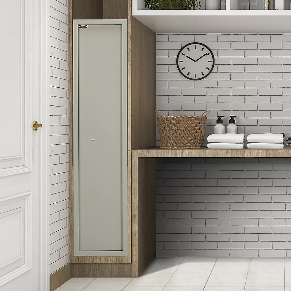 L’armoire à fusils Technomax BCK/5 est une solution de rangement sécurisée et compacte, idéale pour les chasseurs, tireurs sportifs ou collectionneurs souhaitant stocker jusqu’à cinq fusils et leurs munitions dans un espace optimisé. Conçue pour allier sécurité, fonctionnalité et simplicité, elle répond aux exigences de stockage des armes à feu tout en s’intégrant facilement dans votre intérieur. Cette armoire est équipée d’une serrure cylindrique à clé double panneton, assurant une fermeture sécurisée et résistante aux tentatives d’effraction. La porte en acier de 3 mm d’épaisseur renforce la protection contre les intrusions. Le mécanisme est simple à utiliser tout en garantissant une sécurité suffisante pour un usage domestique. Fabriquée en acier, la structure de l’armoire est conçue pour durer. Sa finition gris clair lui permet de s’intégrer discrètement dans tout type d’environnement, qu’il s’agisse d’un bureau, d’un placard ou d’une pièce dédiée. Bien que non résistante au feu, elle offre une protection mécanique efficace contre les chocs et les manipulations non autorisées. Avec une capacité de rangement pour 5 fusils, l’armoire est équipée d’un coffre intérieur sécurisé permettant de stocker les munitions séparément des armes, conformément aux recommandations de sécurité. Ce coffre est également doté d’une fermeture à clé double panneton, garantissant une double sécurité. Les dimensions extérieures sont de H1380 x L220 x P315 mm, ce qui en fait un modèle compact et facile à installer. L’intérieur est conçu pour accueillir les fusils de manière verticale, avec un espace suffisant pour éviter les frottements ou les chocs entre les armes.