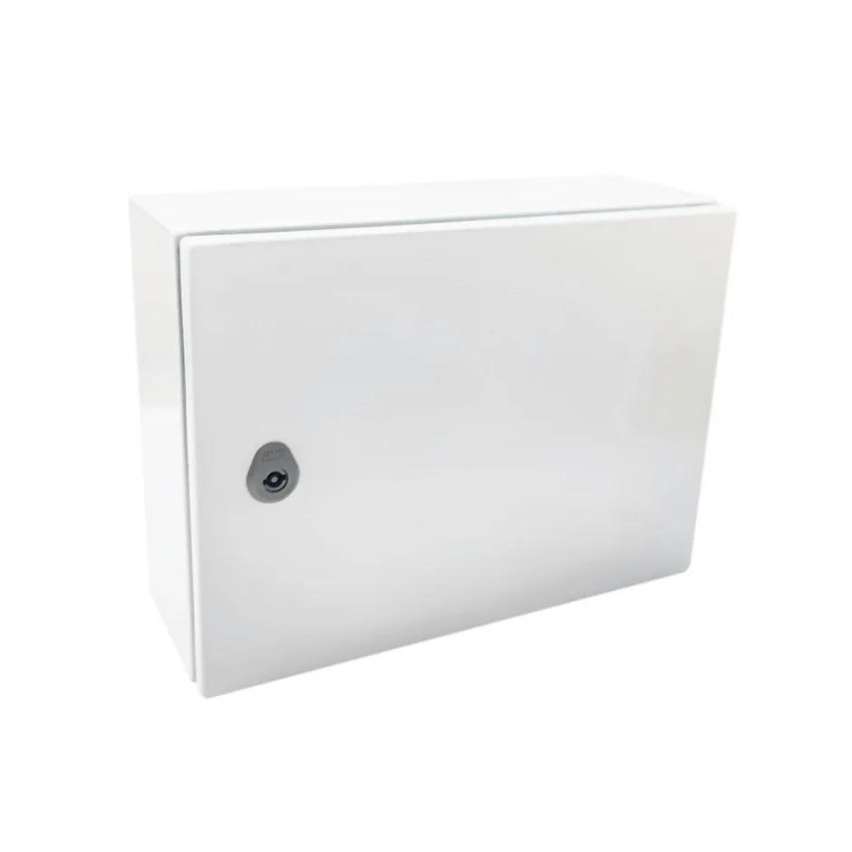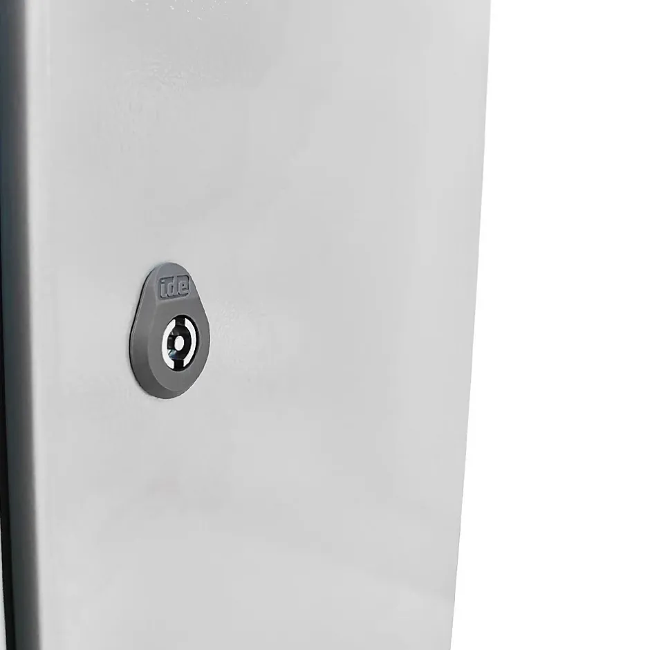 Coffret industriel Argenta IDE fabriqué en EspagneCe coffret industriel en acier laminé est très robuste, il tolère les chocs IK10 grâce à une épaisseur de tôle 1,2mm (porte) et 1,2mm (coffret).Etanche IP66 ce coffret résiste aux conditions d’humidité extrême.Le coffret électrique GN304015 est livré avec 1 serrure standard. Serrure à clé disponible en option.Livré avec une plaque passe câbles à percer pour presse étoupe. Entrées de câbles à membranes souples vendues séparément (format FL21).Les atouts du coffret électrique métal IDE Argenta :Plaque galva pleine fourniePossibilité d’installer plaque pleine, plaque perforée ou plaque polyesterMontage mural; sur pied; sur poteau ou fixation à un mâtDisponible en 77 dimensions du 250×200 au 1400x1200Egalement disponible en version porte vitréeLarge gamme d’accessoires compatibles