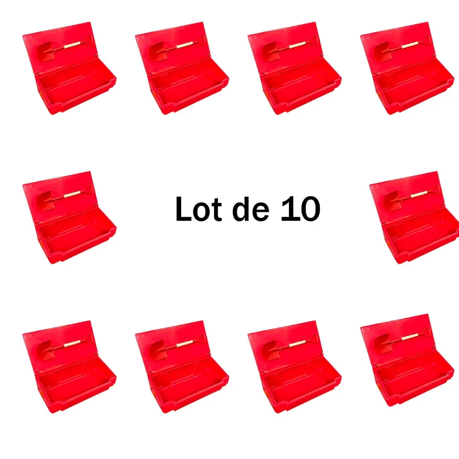 Bac à sable incendie, bac à sel de déneigement 100L avec pelle d’une capacité de 50L en polyéthylène haute densité traité anti UV. Des clips intégrés dans le couvercle permettent de fixer la pelle. Couvercle pentu.Lot de 10 bacs.Capacité : 50LLongueur : 98 cmHauteur : 50 cmLargeur : 34 cm.Poids : 9 kgPour stockage de sable, sel, multi-usagesMatière : polyéthylène haute densitéTrès résistant aux chocs. plage d’utilisation : -30°C à +60°C100% recyclable