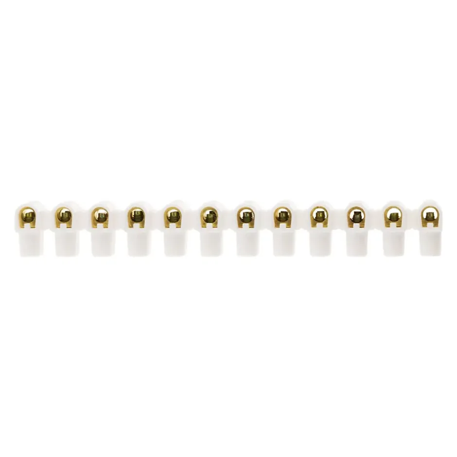 Barrette de connexion. Couleur(s) : blanc. Nombre de plots : 12. Disponible en plusieurs sections de câble : 25mm², 16mm², 10mm², 6mm², 4mm²