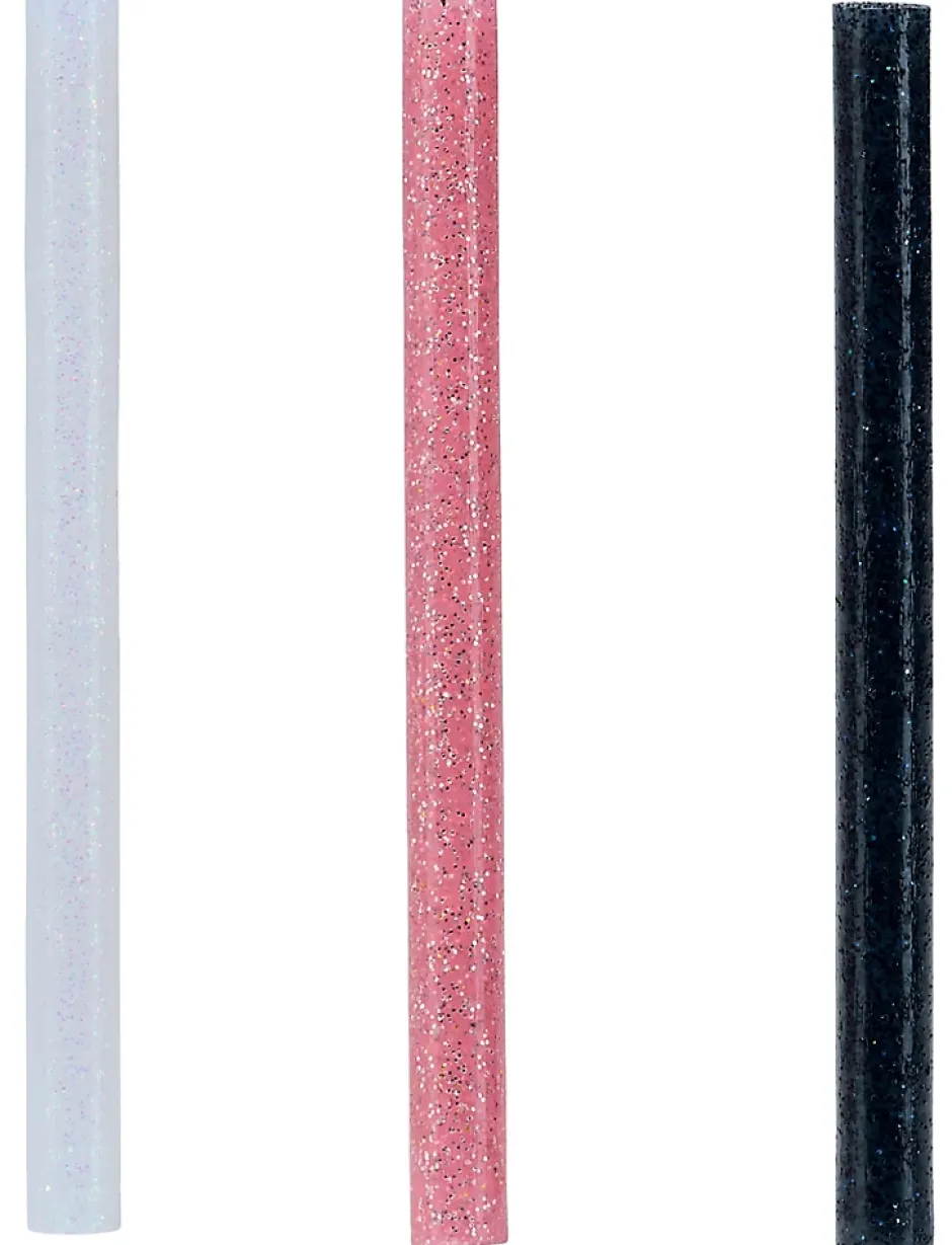 Bâton de colle pailletée pour décoration Ø7mm x 94mm, lot de 36 x 3 couleurs (blanc, noir, or)