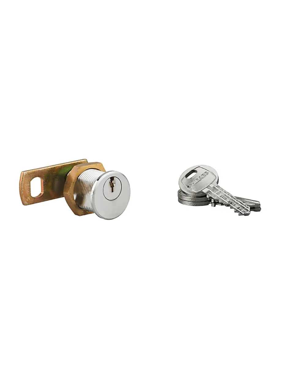 Corps en laiton. Mécanisme à goupilles. pour épaisseur de 23mm maxi. 2 clés en acier nickelé. Ecrou de fixation.