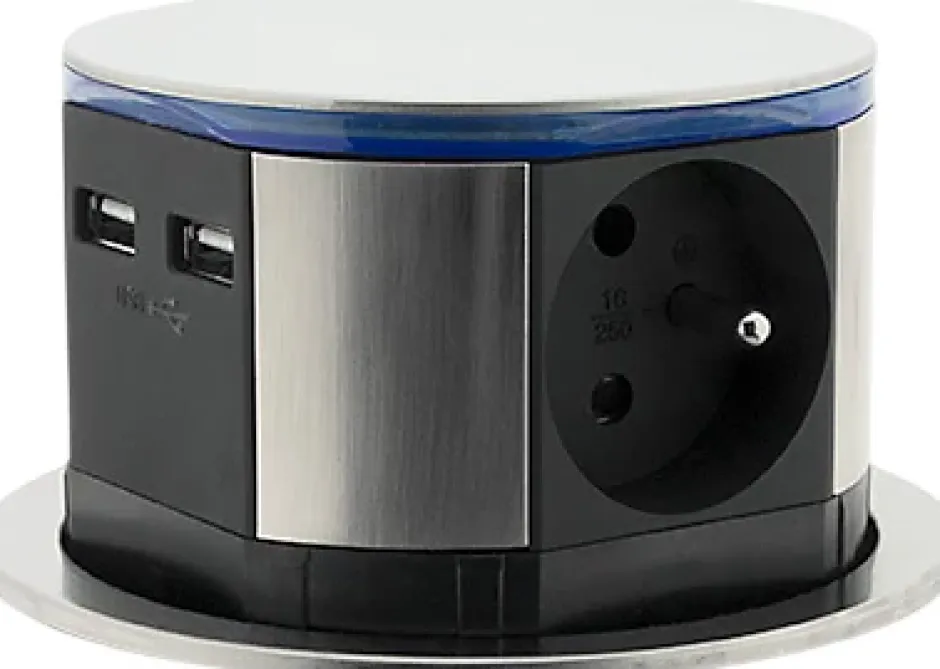 Optimisez votre espace de travail ou de vie avec le bloc multiprise encastrable OTIO. Alliant élégance et fonctionnalité, il se fond discrètement dans votre plan de travail ou bureau grâce à son système escamotable innovant. D’un simple geste, il s’ouvre pour offrir 3 prises 16A 2P+T et 2 ports USB, puis se referme pour libérer de l’espace.