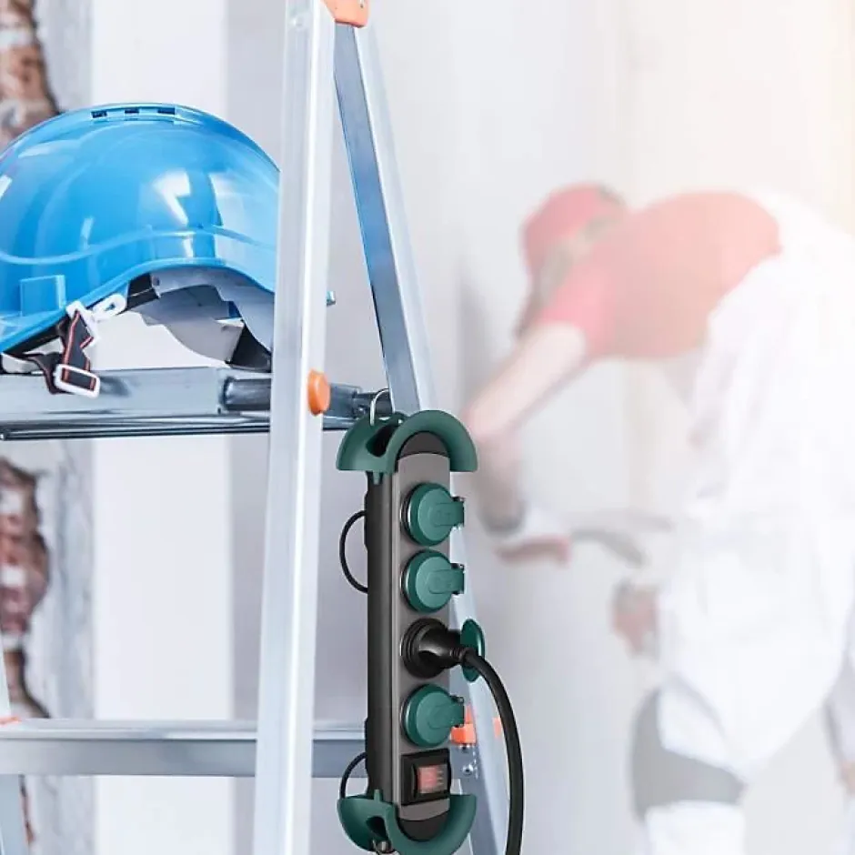 - Étanche IP44, conçu pour chantiers; 4 prises 2P+T à clapet; câble HO7RNF 3G1,5 de 3 m; interrupteur général intégré; intensité 16 A, puissance max 3680 W.