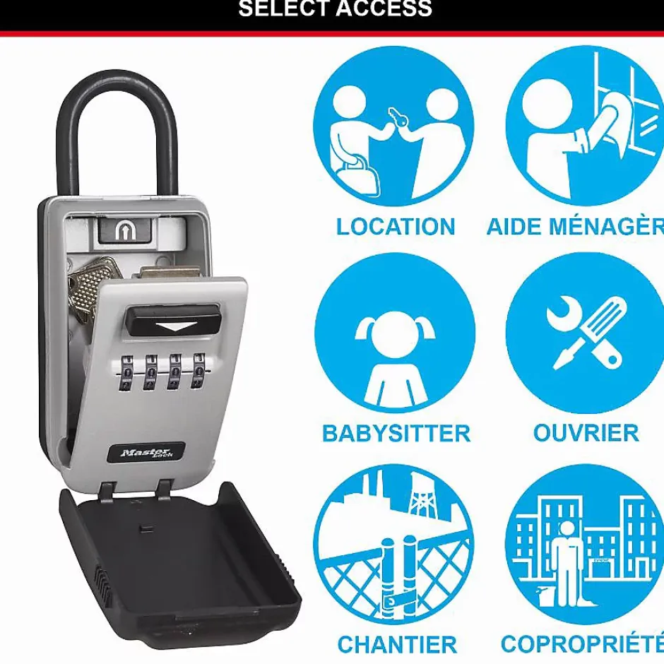 La boîte à clés MASTER LOCK 5424EURD Select Access permet de partager vos clés en toute sécurité avec les personnes de confiance. Conçue pour la location saisonnière ou l’intervention d’employés, elle accepte plusieurs clés ou cartes d’accès grâce à son grand volume intérieur. Sa structure en aluminium protège contre les attaques et les intempéries, le cache protège les molettes de la poussière et de la pluie, et les larges molettes rétroéclairées sont programmables. Définissez une combinaison à 4 chiffres et gardez l’accès réservé aux seules personnes autorisées, avec la tranquillité d’esprit apportée par la garantie limitée à vie MASTER LOCK.
