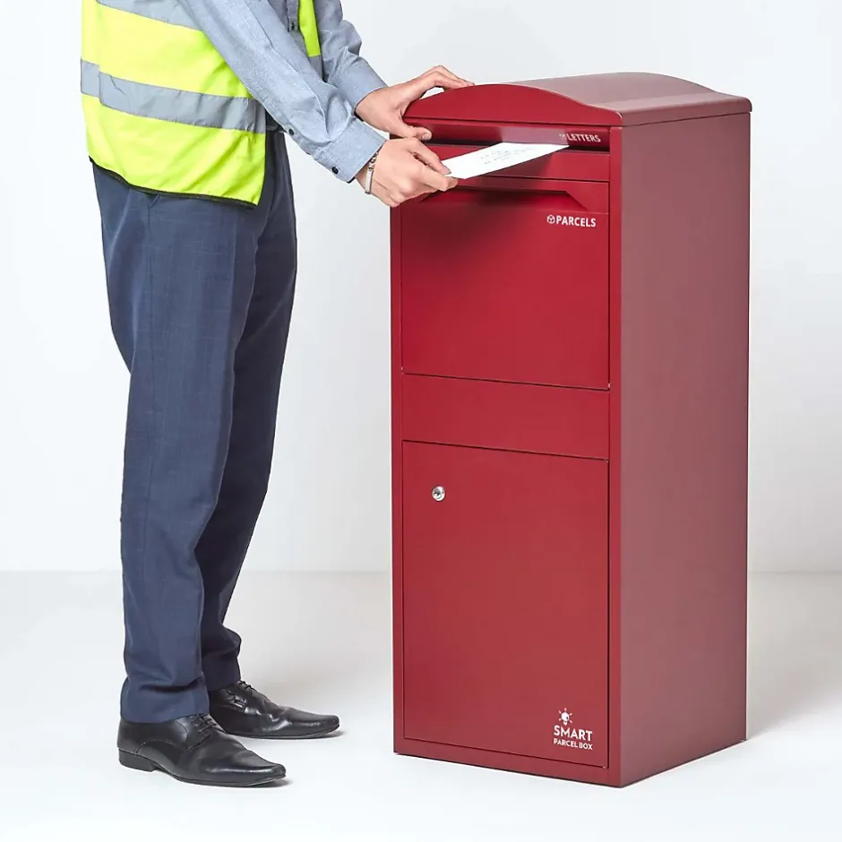 Recevez vos livraisons en toute sérénité avec la SMART PARCEL BOX™ grand format, une boîte à colis extérieure sécurisée conçue pour recevoir plusieurs colis par jour, même en votre absence. Haute de 104 cm, cette boîte aux lettres sur pied possède un compartiment supérieur pratique où les livreurs peuvent déposer vos colis et scanner un code-barres unique comme preuve de livraison. Pour amortir la chute des colis, une couche de PVC protectrice est intégrée à l’intérieur. Une fois déposés, vos colis restent en sécurité dans le compartiment inférieur, accessible uniquement grâce à votre clé personnelle. Fabriquée en acier galvanisé avec revêtement anti-rouille, cette boîte aux lettres résistante aux intempéries s’installe facilement devant votre maison. Les fixations sont incluses (vérifiez la compatibilité selon votre type de mur ou sol). Pratique, robuste et antivol, elle vous permet de recevoir vos colis en toute sécurité à tout moment, même lorsque vous êtes absent.