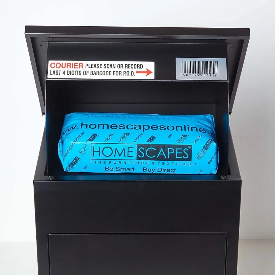 Pratique et compacte, la SMART PARCEL BOX™ murale est la solution idéale pour recevoir vos livraisons à domicile en toute sécurité en votre absence, même dans les petits espaces. Conçue pour recevoir petits et moyens colis (jusqu’à 32 x 20 x 12 cm), cette boîte à colis s’installe facilement au mur ou au sol, à proximité de votre porte d’entrée. Son système d’ouverture par couvercle sécurisé permet au livreur de déposer vos paquets facilement et rapidement ; une fois à l’intérieur, ils sont automatiquement stockés dans un compartiment verrouillé, inaccessible sans votre clé personnelle. Cette boîte aux lettres murale dispose d’un code-barres unique pouvant être scanné comme preuve de livraison. Fabriquée en acier galvanisé résistant à la rouille avec revêtement par poudre, cette boîte à colis extérieure offre une protection fiable contre le vol et les intempéries. Les fixations sont incluses pour une installation simple et rapide. Veuillez-vous assurer qu’elles soient adaptées à votre propriété avant toute installation.