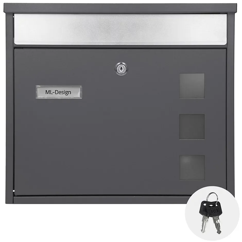 Description du produit :Ces boîtes aux lettres de ML-Design en acier inoxydable robuste et revêtu par poudre convainquent par leur design moderne et protègent ton courrier de manière fiable contre l’humidité et la saleté. Le revêtement de haute qualité est particulièrement durable et facile à entretenir et te garantit une utilisation sans problème.Le grand casier à courrier, que tu peux fermer en toute sécurité à l’aide de deux clés fournies, est particulièrement pratique.La fabrication de haute qualité de ML-Design fait la différence ! Le matériau est de très haute qualité et garanti résistant aux intempéries. La boîte aux lettres protégera longtemps tes lettres importantes de la pluie.Les boîtes aux lettres de ML-Design sont toutes disponibles dans la boutique de ECD Germany, à un bon prix.Contenu de la livraison :1 x support de boîte aux lettres, y compris 3 ancrages au solmatériel de montage et instructions de montage inclus1 x boîte aux lettres1 x kit d’accessoires (y compris 2 clés, entretoise, matériel de montage)